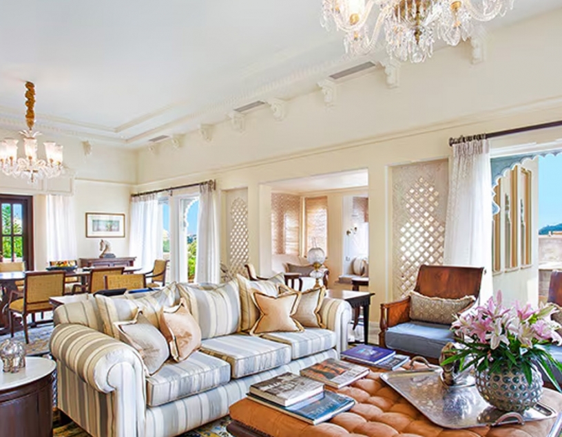 The Oberoi Udaivilas is one of India’s most luxurious and iconic heritage resorts, located on the serene banks of Lake Pichola in Udaipur. Inspired by traditional Rajasthani palaces, the property features grand domes, intricate courtyards, reflection pools, and beautifully landscaped gardens, creating a royal and romantic ambiance. Spread across expansive grounds, the resort offers stunning views of the lake and City Palace, with many rooms featuring private terraces or semi-private pools. The architecture reflects the grandeur of Mewar royalty, while interiors blend classic elegance with modern luxury. Guests are welcomed with exceptional hospitality and personalized services, making every stay feel regal. The hotel is also known for its curated experiences such as boat rides on Lake Pichola, private dining under the stars, and cultural performances. Whether for luxury vacations, destination weddings, or romantic getaways, The Oberoi Udaivilas delivers a perfect combination of heritage charm, world-class comfort, and unforgettable views.
